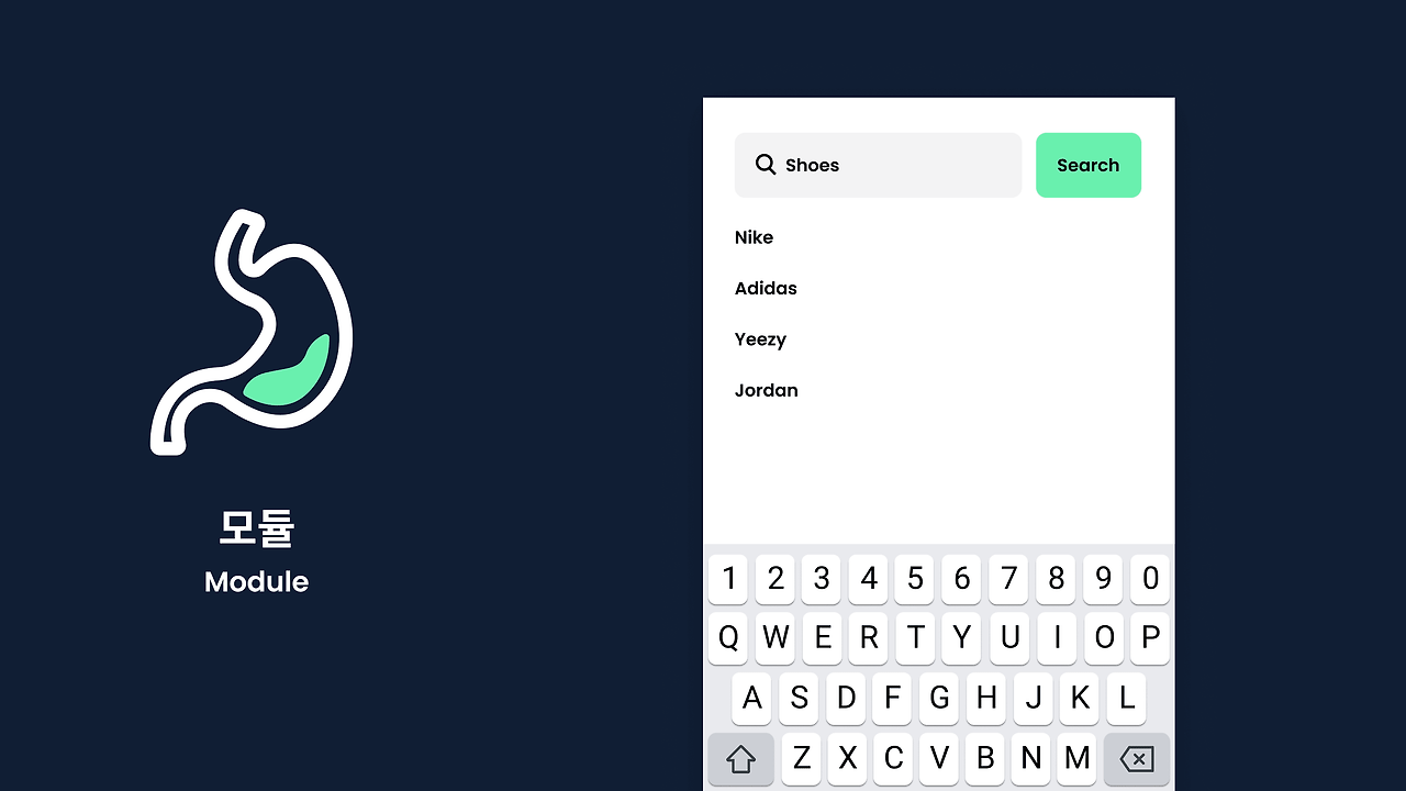조직이 모여 독립적인 기능을 수행하는 기관이 됩니다. 컴포넌트가 합체해 모듈이 되죠. 독립된 기능을 기준으로 여러 컴포넌트가 문제를 해결하고 문제 해결의 덩어리를 모듈이라 합니다. 예를 들어 사용자가 A를 찾고 싶다.라는 목표가 있다면 아래와 같이 세세하게 분리해 이해할 수 있습니다.