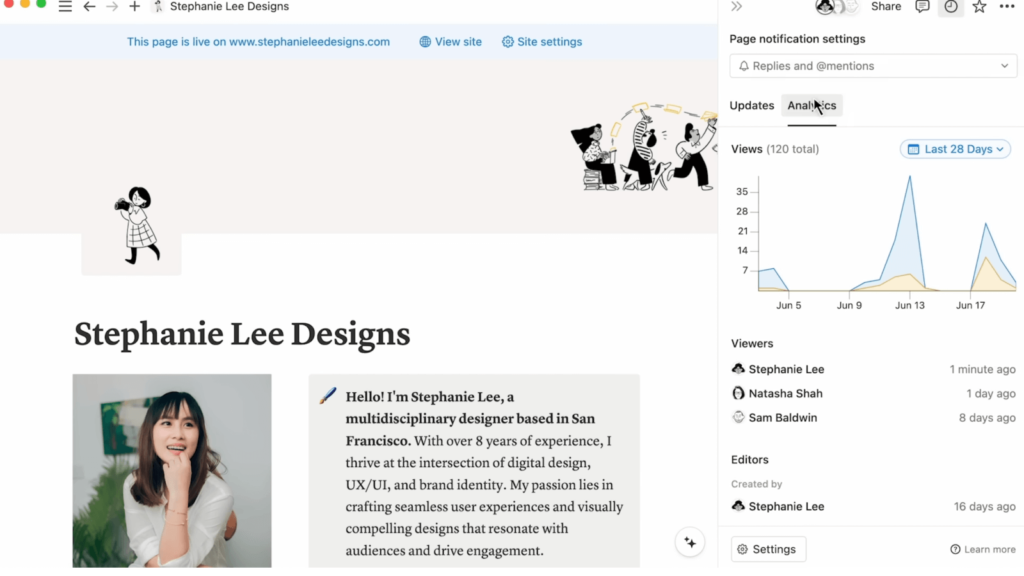 기존 노션 페이지를 사용할 때처럼 아름다운 블록 편집 기능을 사용할 수 있고 다양한 서드파티 서비스를 임베드해 다채로운 웹 경험을 설계할 수 있습니다. 이미 많은 사용자가 웹 게시 플러그인을 이용해 노션 페이지를 웹처럼 사용하고 있었죠. 특히 복잡한 콘텐츠 관리 시스템 없이 쉽게 수정하고 관리할 수 있어 큰 인기를 끌었습니다.