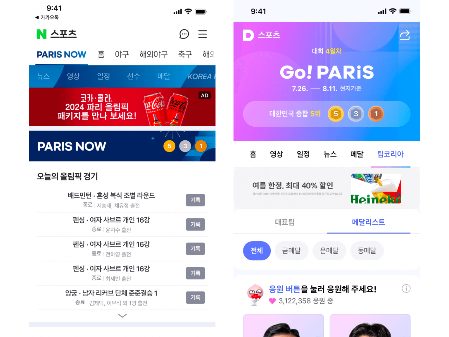 파리 올림픽 열기가 뜨겁습니다. 최근 대한민국이 총, 칼, 활을 사용한 종목에서 여러 메달을 획득하며 큰 화제를 일으키고 있죠. 전세계인의 축제인 올림픽을 전하기 위해 포털의 양대산맥인 네이버와 카카오가 파리 올림픽 전용 페이지를 만들었습니다. 네이버와 카카오는 서로 어떤 경험에 집중해 설계했을까요?