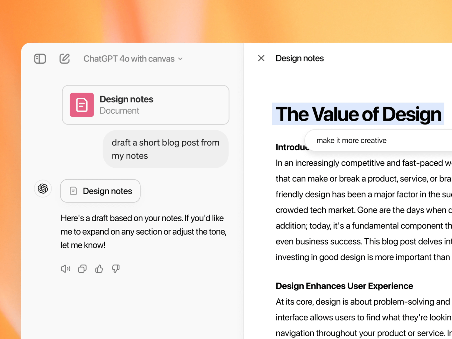 OpenAI가 글과 코드를 쓸 때 유용한 새로운 인터페이스 캔버스(Canvas)를 발표했습니다.