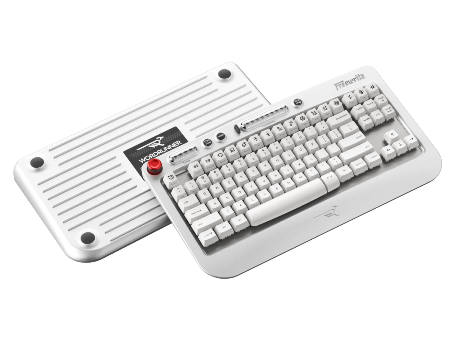 Wordrunner는 알루미늄 소재로 제작되었으며 키보드는 플로팅 디자인으로 설계되었습니다. 빨간색 컨트롤 노브가 포함되어 있어 조작의 편의성을 더했습니다. 이 제품은 2025년 2월 킥스타터를 통해 첫 선을 보일 예정이며, 출시는 같은 해 말로 계획되어 있습니다.