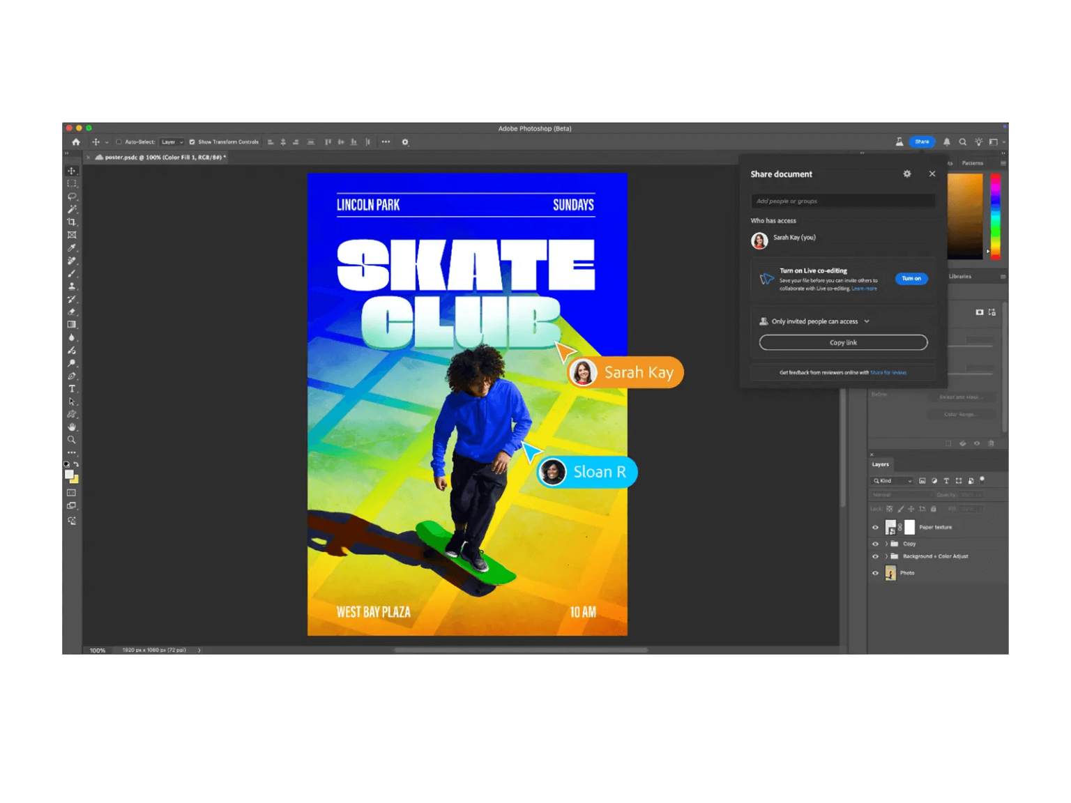 어도비가 포토샵에 라이브 공동 편집 기능을 추가합니다. 이 기능은 사용자가 포토샵 문서를 동시에 편집할 수 있도록 지원하며 데스크톱과 웹 앱 버전에 모두 적용될 예정입니다. 현재 iPad용 포토샵에 이 기능이 적용될지 여부는 알려지지 않았습니다.