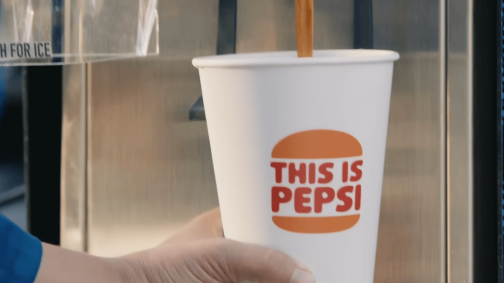 펩시는 이번 캠페인을 통해 기존의 패스트푸드 브랜드 로고를 변형한 디자인도 선보였습니다. 웬디스의 마스코트는 빨간 머리카락 대신 펩시의 대표 색상인 파란색 머리로 바뀌었고, 버거킹 로고에는 “This is Pepsi”라는 문구가 삽입되었습니다. 펩시의 창의적 마케팅을 담당한 BBDO는 이번 캠페인을 통해 “버거에는 펩시가 어울린다”는 메시지를 강조하고 있습니다.