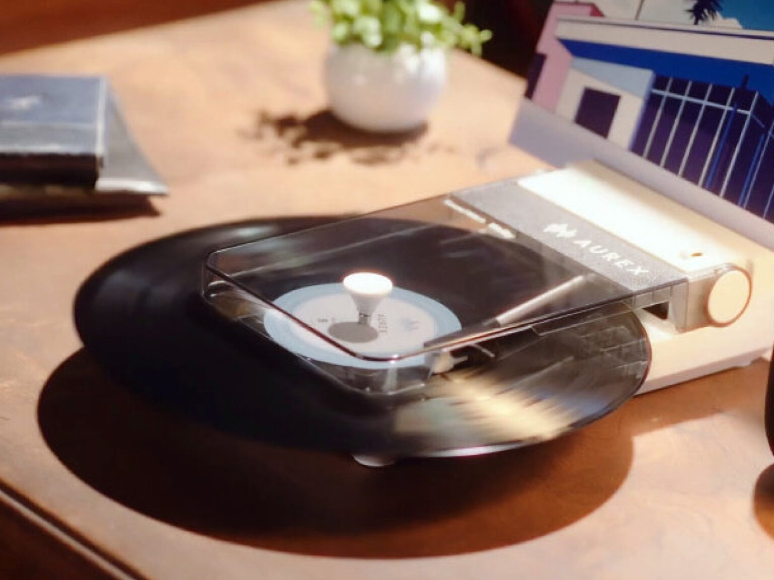 도시바가 자사 서브 브랜드 ‘Aurex’의 이름으로 새로운 휴대용 무선 턴테이블 ‘AX-RP10(W)’을 공개했습니다. 이 제품은 블루투스 기능을 탑재해 무선 이어폰이나 스피커와 직접 연결할 수 있으며 유선 연결도 가능합니다.
