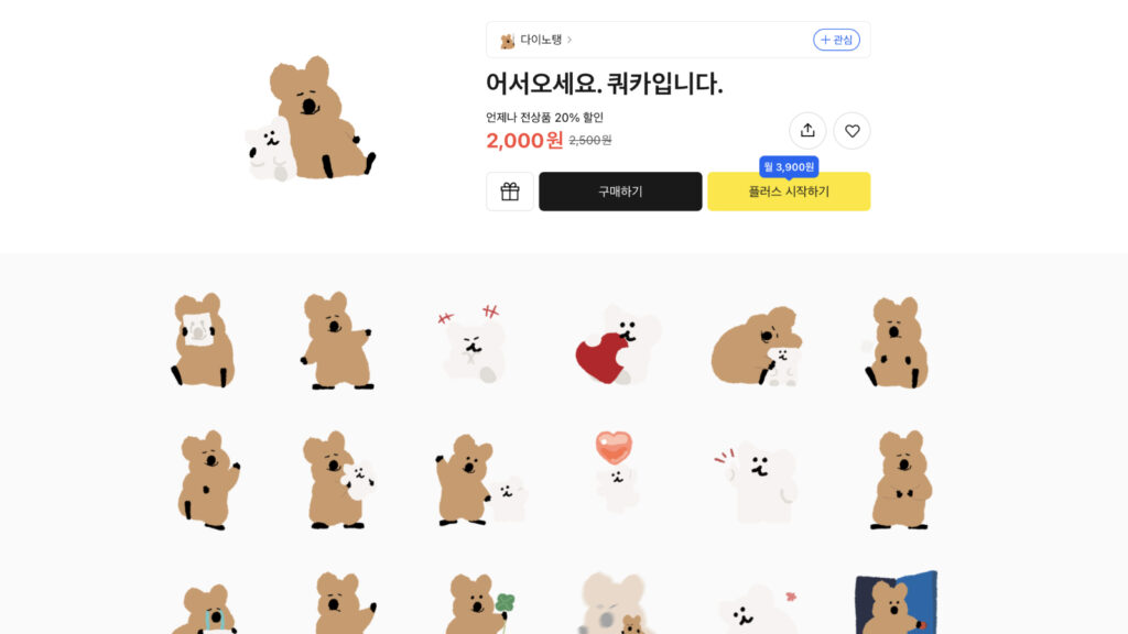 가장 큰 성장 동력은 카카오톡 이모티콘을 통한 강력한 팬덤 형성에 있습니다. 2023년 초 카카오톡 무료 이모티콘으로 선정되면서 폭발적인 인기를 얻었으며, 카카오톡 이모티콘샵에서 다운로드 1위를 기록하고 인스타그램 팔로워 약 47만 명을 보유하는 등 높은 인지도를 확보했습니다.