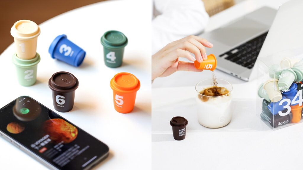 새턴버드의 브랜드 디자인은 기능성과 감성을 동시에 전달합니다. 대표적인 시각 아이덴티티는 컬러 넘버링이 붙은 작은 커피 캡슐로, 제품의 농도와 특성을 숫자로 표현하여 소비자에게 직관적이고 맞춤형의 경험을 제공합니다. 이 넘버링 시스템은 브랜드와 사용자 사이의 감각적 소통 수단으로 작용하며 강한 시각적 인상을 남깁니다.