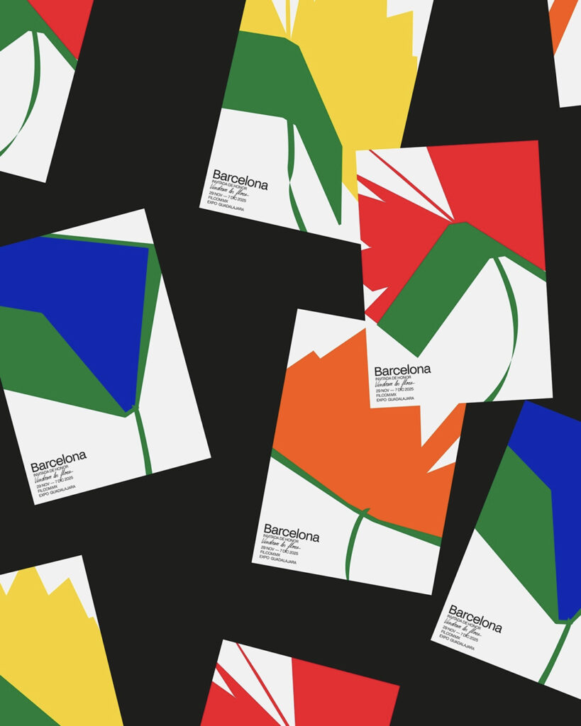 올해 캠페인은 바르셀로나의 문학적 풍경을 시각적으로 해석한 디자인으로 주목받고 있습니다. 바르셀로나 기반의 디자인 스튜디오 Bakoom Studio가 아트디렉션을 맡아, 새로운 세대의 문학과 감성을 전하는 그래픽 아이덴티티를 완성하였습니다. 작가 메르세 로도레다의 문장을 인용해 “11월에는 꽃이 올 것이다”라는 메시지를 중심으로 캠페인이 전개됩니다.