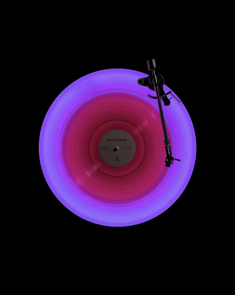오디오테크니카는 호타루를 단순한 음악 재생 기기가 아닌, 감각의 의식으로 만들고자 했습니다. 일본 다도에서 영감을 받은 설치 공간은 ‘로지’와 같은 길을 따라 관객을 유도하며, 물방울 소리와 모래 언덕, 종소리 등이 혼합된 주변 사운드는 공간과 사람, 순간을 모두 하나의 음악으로 직조해 나갑니다. 심지어 방문객의 숨소리와 발소리마저 실시간으로 레코딩되어 바이닐에 새겨지며, 그 순간의 공기까지 기록하는 퍼포먼스로 승화됩니다.