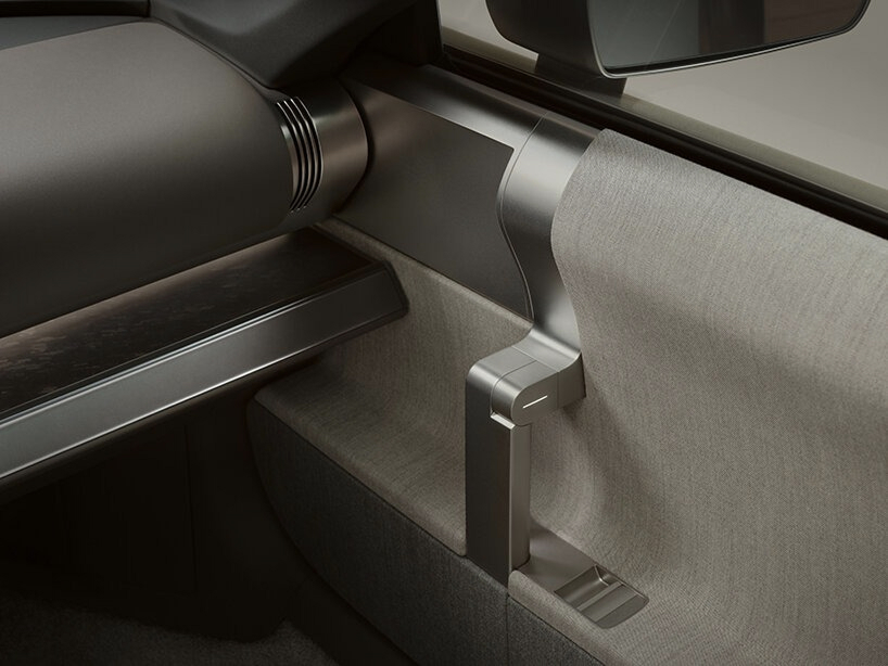 조향 장치는 전통적인 원형 스티어링 휠로 유지되었으며, 금속 디테일과 정확한 촉각 피드백이 강조됩니다. 전체 인테리어는 외부의 티타늄 컬러에 맞춰 톤온톤으로 통일되어 있으며, 자연 소재 마감과 간접 조명이 공간의 단단한 구조미를 부각시킵니다.