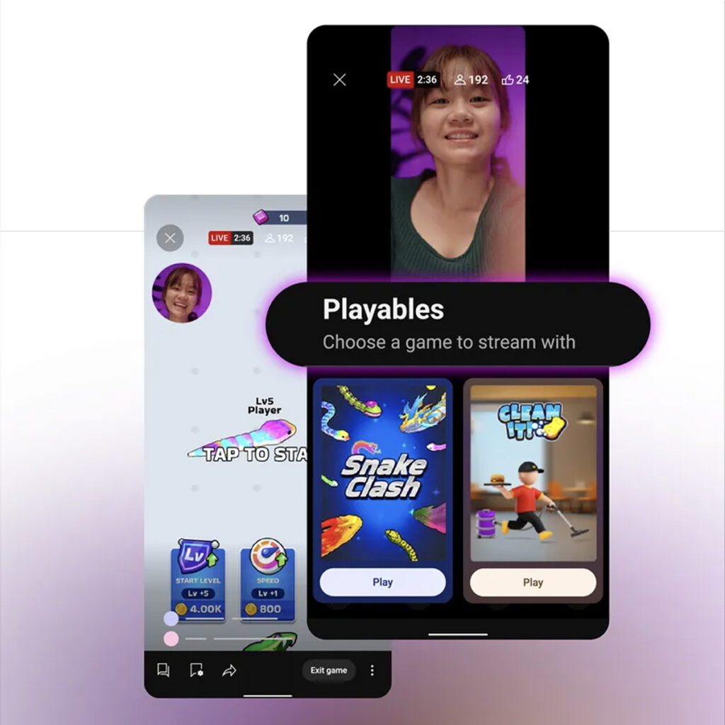 먼저 라이브 스트리밍 분야에서는 유튜브 역사상 가장 큰 규모의 기능 확장이 이루어졌습니다. 가장 주목받는 변화는 ‘플레이어블(Playables)’ 게임의 통합입니다. 앵그리버드 쇼다운, 컷 더 로프, 트리비아 크랙 등 인기 미니게임을 라이브 방송 중 실시간으로 즐길 수 있게 되었으며, 시청자와의 즉각적인 소통도 가능해졌습니다. 유튜브는 이 기능이 신규 크리에이터가 부담 없이 첫 방송을 시도할 수 있는 출발점이 되길 기대하고 있으며, 게임 중심 플랫폼인 트위치와의 경쟁을 염두에 둔 조치로도 해석됩니다.