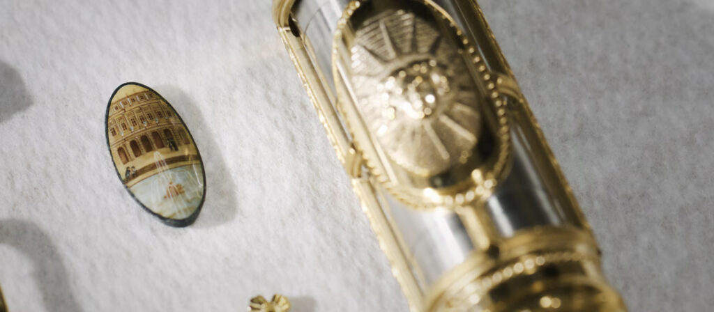 이번 하이 아티스트리 시리즈는 인류의 문화유산을 기리는 테마 아래, 세계의 위대한 건축물과 역사적 장소를 오마주하는 ‘그랑되르 컬렉션’의 첫 장을 엽니다. 그 시작은 태양왕 루이 14세의 궁전, 베르사유입니다. 루이 14세의 상징인 태양 문양과 신 아폴로의 형상, 그리고 왕실 인장 모노그램이 디자인 전반에 녹아 있어, 한 자루의 펜에서 프랑스 왕정의 예술적 기운이 느껴집니다.