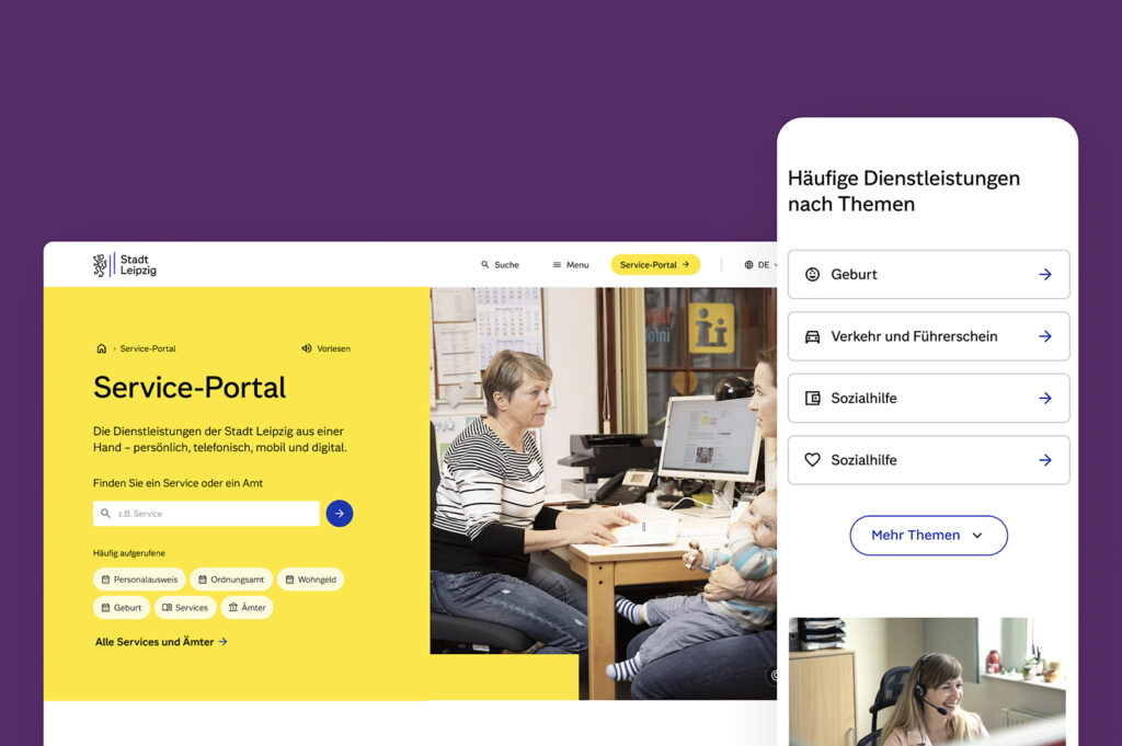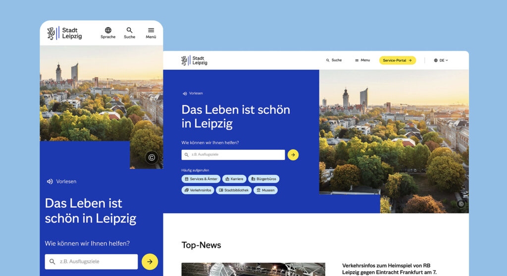 기존 Leipzig.de는 수년 동안 누적된 복잡한 구조로 인해 시민들이 원하는 서비스를 찾기 어려웠습니다. 이를 해결하기 위해 에덴스피커만은 디지털 기반의 새로운 도시 브랜드를 만들며 시민 포털을 처음부터 다시 설계했습니다. 사람들은 행정 조직이 아니라 주제 중심으로 사고한다는 점에 착안해 정보 구조를 주제별 탐색 중심으로 재편하고 강력한 검색 기능을 도입해 접근성을 높였습니다. 새로운 포털은 행정 서비스 제공 기능과 도시 소식과 행사 정보를 전달하는 플랫폼의 역할을 동시에 수행합니다.