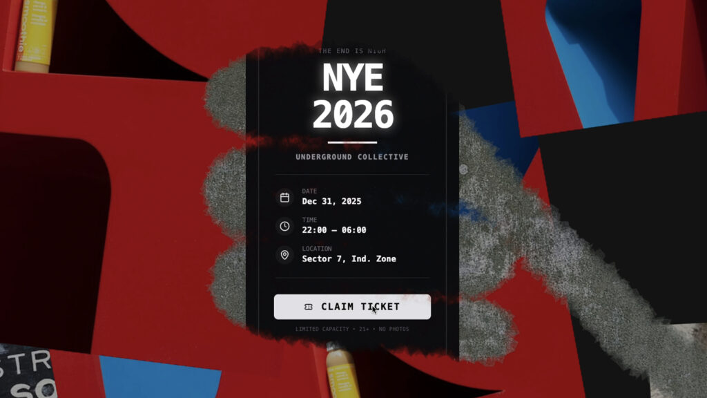 연말 행사 RSVP 페이지 실험에서도 제미나이 3 프로는 디자인 톤의 급격한 변화에 잘 대응했습니다. Y2K 분위기의 어두운 미래적 스타일과 기능적 폼을 완성한 뒤 곧바로 콘크리트 포에트리 스타일을 요구해도 구조와 인터랙션을 유지한 채 전혀 다른 미감을 구현했습니다. 모션과 인터랙션 디테일도 각 스타일에 어울리게 생성돼 탐색 과정이 자연스럽게 이어졌습니다.