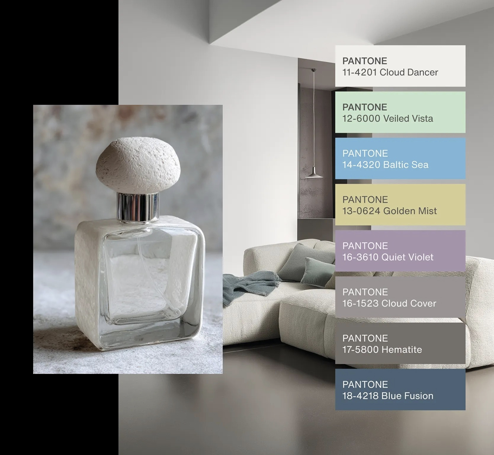 Cloud Dancer는 구조적 키 컬러로서 다양한 팔레트와의 자연스러운 조화를 이룹니다. 파우더리한 파스텔과 함께 사용할 경우 은은한 감성을 연출하며 Light and Shadow 팔레트에서는 부드러운 대비가 더해져 깊은 분위기를 형성합니다. 단독으로 사용해도 명료한 존재감을 주며 다른 색과 함께할 때는 공기처럼 가벼운 여백을 만드는 역할을 합니다.