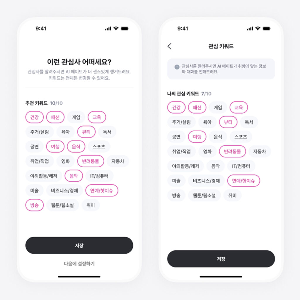 이번 업데이트의 핵심은 관심사 등록 기능입니다. 사용자가 앱 내에서 관심 키워드를 설정하면 AI 메이트가 이를 기억해 답변을 최적화하고 홈 화면을 포함한 앱 전반에서 맞춤형 콘텐츠를 제안합니다. 예를 들어 건강에 관심이 많은 사용자는 관련 정보가 자동 추천되며 원클릭으로 질문할 수 있습니다.