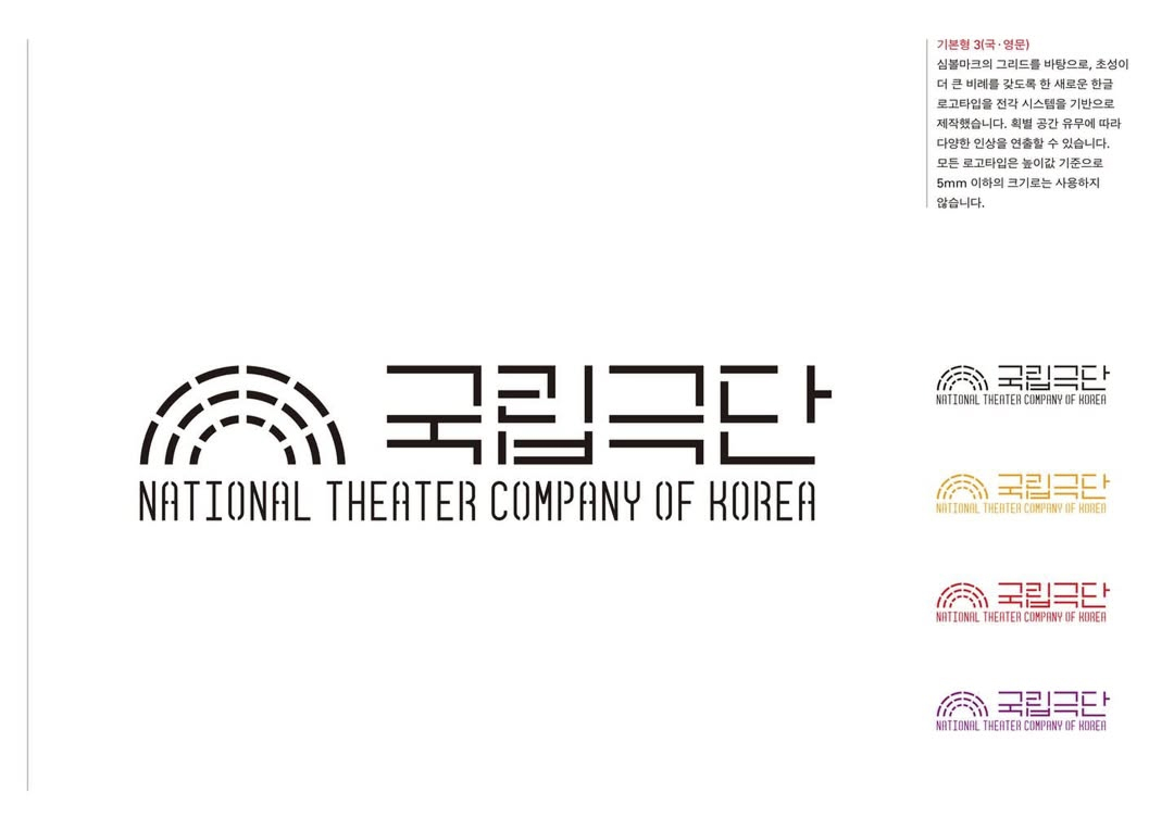 국립극단은 새 아이덴티티의 핵심 모티프로 원형극장의 형태를 제시했습니다. 전통과 현대성의 만남과 확장이라는 서사를 원형극장과 확장되는 객석의 시각적 장치로 구현했다는 설명입니다. 관객을 중심에 두고 더 많은 만남을 목표로 전통극과 현대극을 넘나드는 기관의 지향을 시각 시스템에 담았다는 의미입니다.
