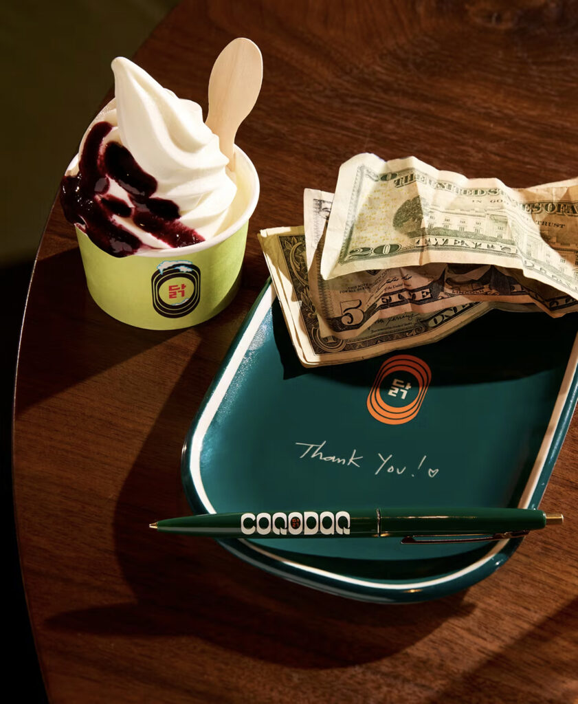뉴욕에서 한국식 프라이드치킨을 파인 다이닝으로 재해석한 레스토랑 코코닭이 브랜드 아이덴티티로 주목받고 있습니다. 미쉐린 스타를 받은 코트 코리안 스테이크하우스의 창립자 사이먼 김과 그레이셔스 호스피탈리티 매니지먼트가 선보인 치킨 레스토랑입니다. 브랜드 디자인은 펜타그램 뉴욕의 에밀리 오버먼 팀이 맡아 한국과 미국 치킨집의 시각 언어를 끌어오되 격상된 톤으로 정리했습니다.