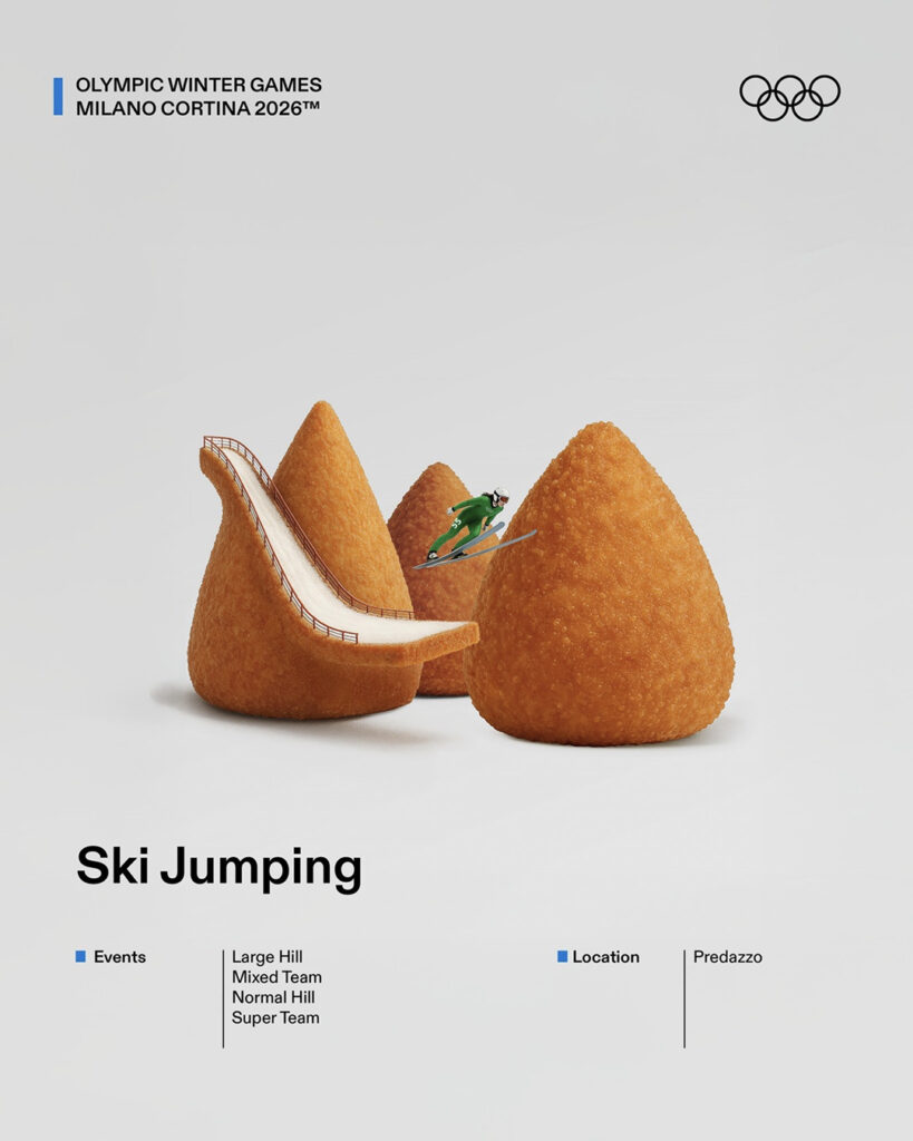 2026 밀라노 코르티나 동계 올림픽은 스포츠 포스터에 이탈리아의 미식을 전면으로 끌어들였습니다. 경기 홍보를 넘어서 개최지의 맛과 분위기를 함께 기억하게 만드는 전략입니다. 조직위는 트리에날레 밀라노와 함께 10명의 젊은 이탈리아 작가를 선정해 올림픽과 패럴림픽 공식 아트 포스터를 공개했습니다. 포스터 프로젝트는 예술과 스포츠와 동시대 문화를 연결하는 실험으로 소개됐습니다.