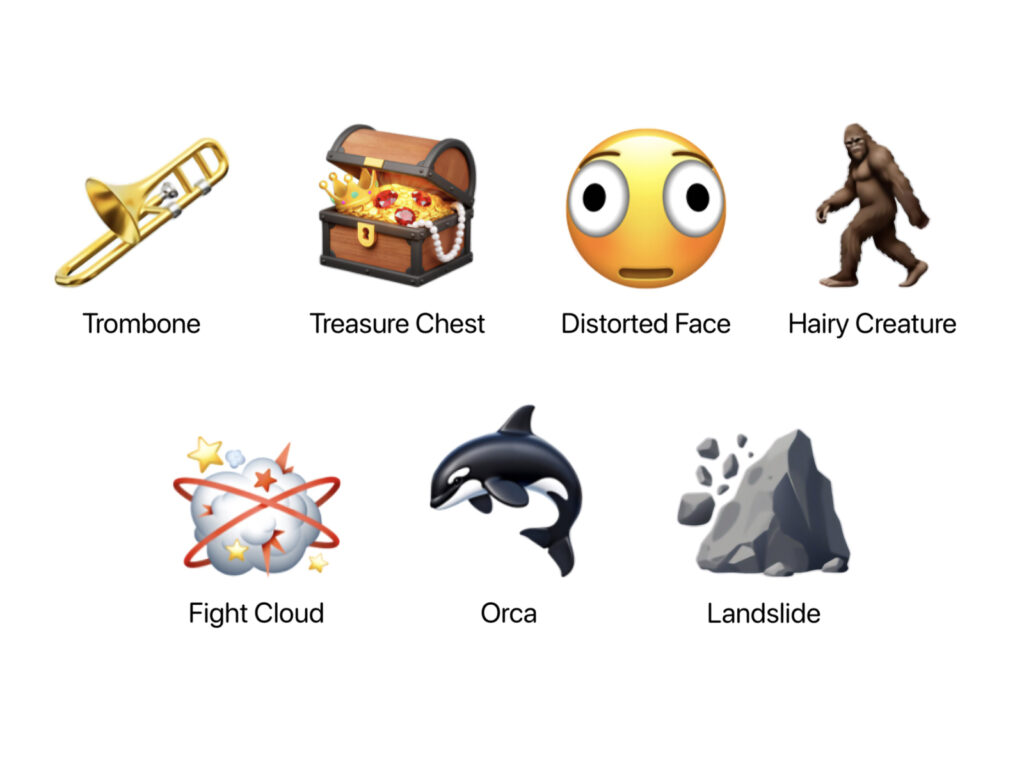 이번 베타에서 추가된 이모지는 총 163종입니다. 이 가운데 13종은 완전히 새로운 개념의 이모지이며 나머지 150종은 기존 사람 레슬링 이모지와 토끼 귀를 한 사람 이모지에 적용된 피부톤 조합입니다. 새롭게 들어간 이모지는 일그러진 얼굴 싸움 구름 발레 댄서 오르카 털복숭이 생명체 트롬본 산사태 보물상자 등입니다.