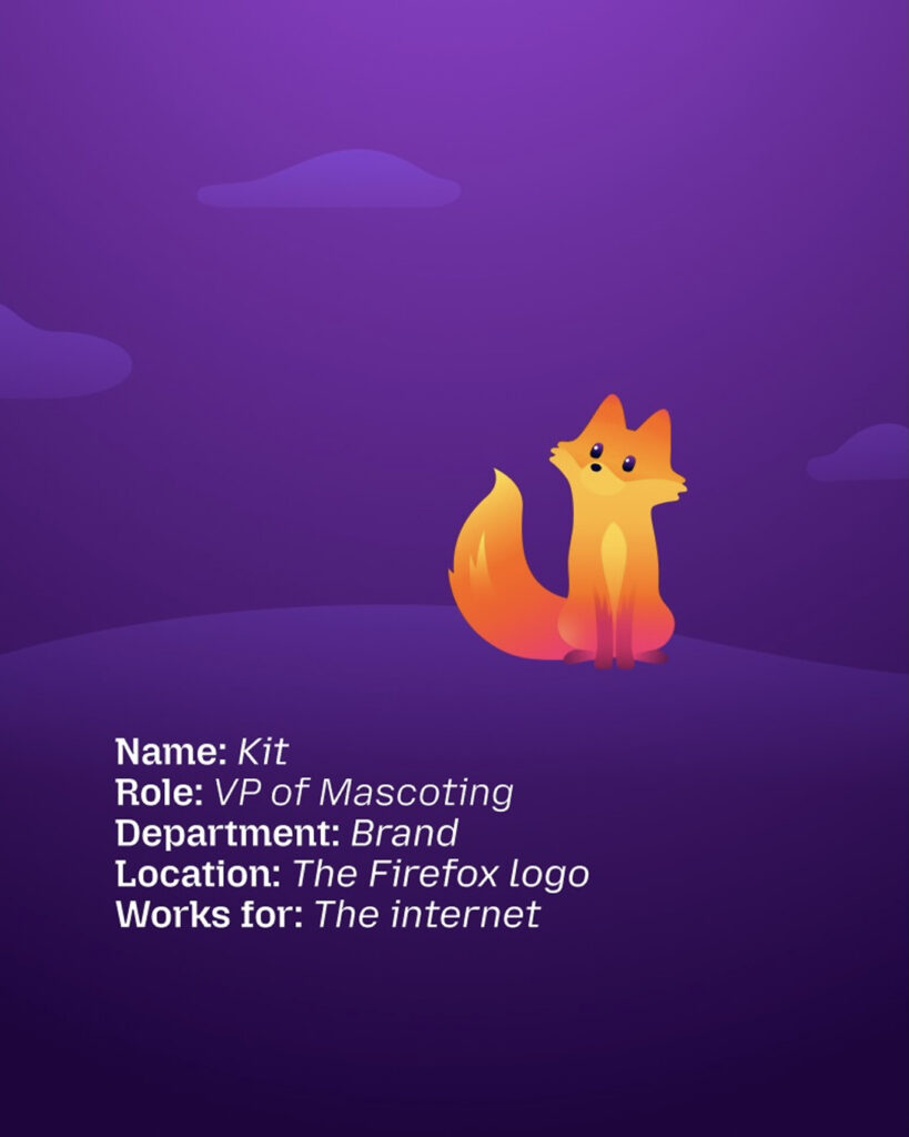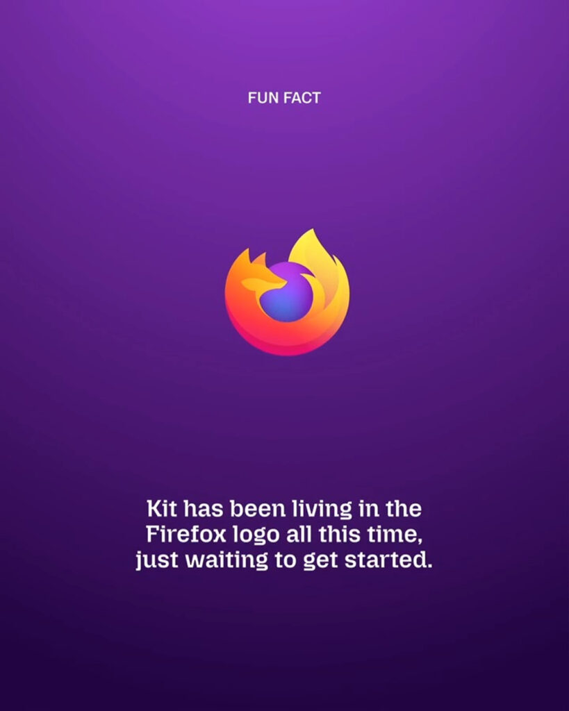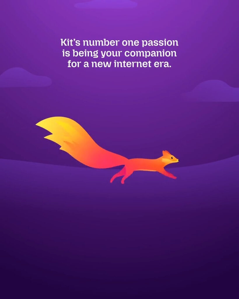 이런 메시지를 더 친근하게 전달하기 위해 등장한 존재가 바로 키트입니다. 키트는 브라우저 안에서 처음 시작할 때나 새 기능을 발견할 때 설정을 바꾸는 작은 성취를 경험할 때 등장합니다. 제품 웹사이트와 블로그 소셜미디어 캠페인에서도 모습을 드러내며 사용자가 파이어폭스를 더 따뜻하게 느끼도록 설계됐습니다. 다만 키트는 말을 많이 거는 캐릭터가 아닙니다. 모질라는 키트를 농담을 던지는 해설자가 아니라 사용자를 조용히 응원하는 신호라고 설명했습니다.