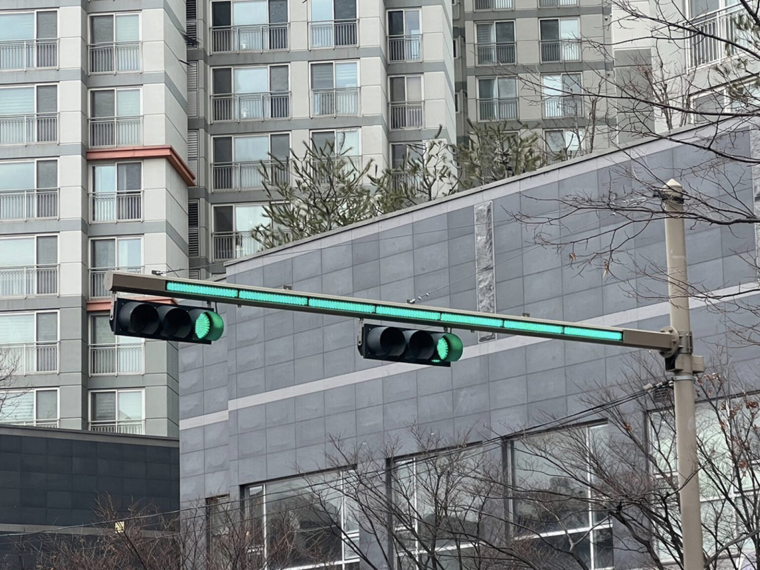국내 도로 환경에서는 대형 차량에 신호등이 가려지거나 가로수와 현수막 주차 차량 등 주변 장애물 때문에 신호 확인이 어려운 경우가 적지 않습니다. 비와 안개 김서림 같은 기상 조건도 시야를 떨어뜨리는 요인으로 작용합니다. 트레시스의 신호등 보조장치는 이런 한계를 보완하기 위해 만들어졌습니다. 신호등주에 홈을 파고 LED 모듈을 삽입하는 구조를 적용해 기존 신호체계와 연동하면서도 운전자의 시인성을 높였습니다.