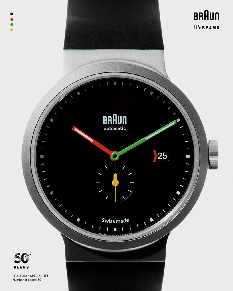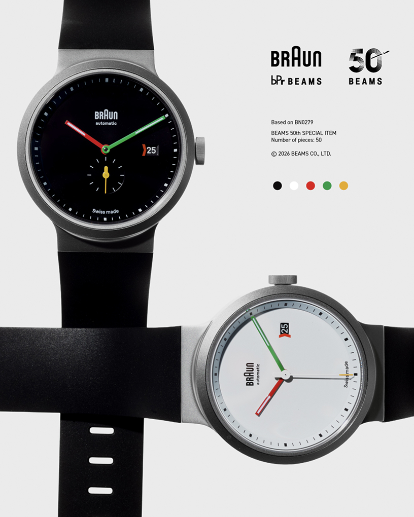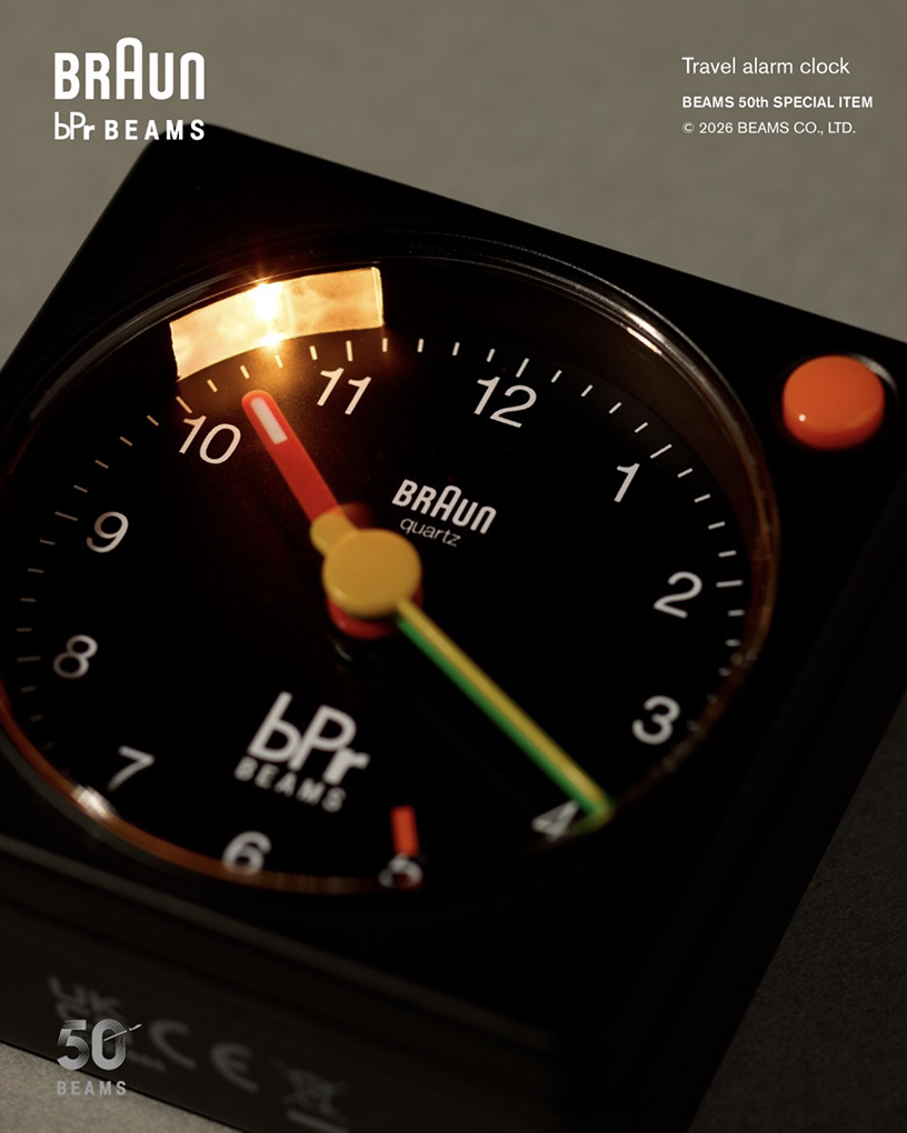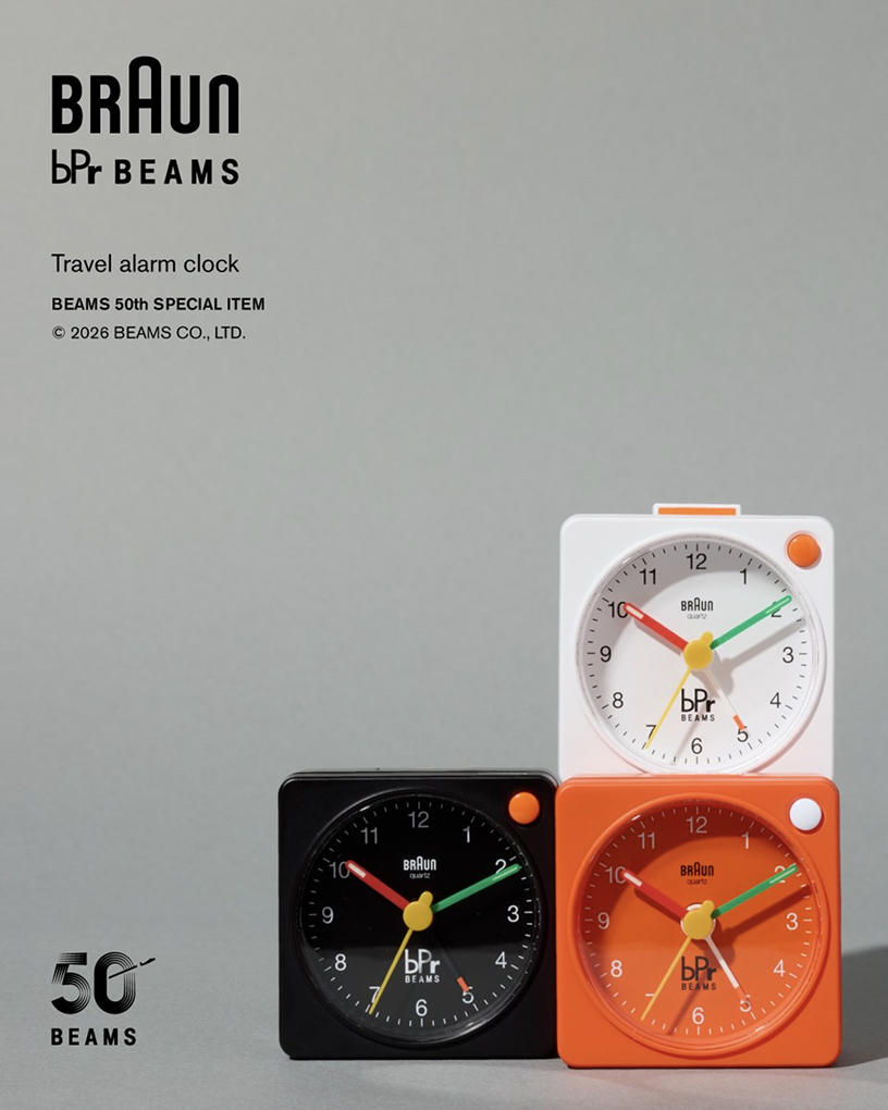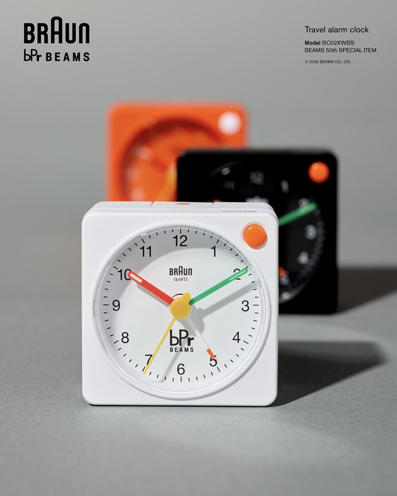 빔스의 라이프스타일 레이블 bPr BEAMS가 브라운과 손잡고 50주년 기념 협업 제품을 선보였습니다. 이번 협업은 2026년 3월 26일 출시되며 알람 클록 BC02X와 오토매틱 워치 BN0279 두 모델로 구성됩니다. 빔스는 이번 프로젝트를 자사 50주년을 기념하는 별주 라인으로 소개했습니다.