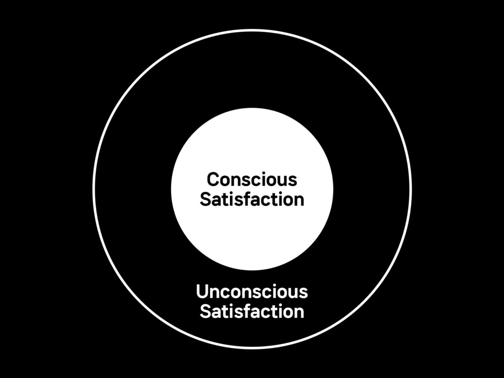의식적 만족은 문제가 완벽하게 해결되어 더 이상 신경 쓸 것이 남지 않는 것입니다. 무의식적 만족은 쓰는 것만으로도 즐거운 감각을 느끼게 하고 경험 전반에 걸쳐 긍정적 반응이 극대화되는 것입니다.