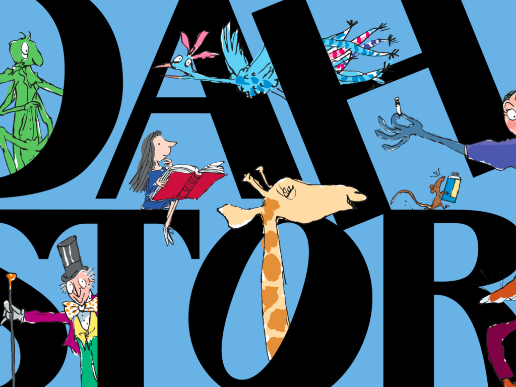 색상과 그래픽 요소도 로알드 달의 책에서 영감을 받아 제작되었습니다. 따뜻한 색조를 활용한 배경 위에 퀜틴 블레이크의 삽화가 함께 배치되었으며, 여기에 황금 티켓, 복숭아, 새와 실 같은 요소가 추가되었습니다. 이는 작가의 대표적인 이야기에서 가져온 상징적 이미지입니다.