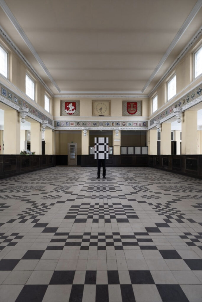 카우나스 중앙우체국은 유네스코 세계유산에 등재된 건축물입니다. 프락티카는 이 건물 바닥에 들어간 흑백 민속 패턴에 주목했습니다. 이 패턴은 단순한 장식 요소가 아니라 리투아니아의 전통성과 기능주의 건축이 만나는 지점을 보여주는 시각 자산이었습니다. 프락티카는 이 역사적 모티프를 오늘의 브랜드 언어로 다시 구성했습니다.