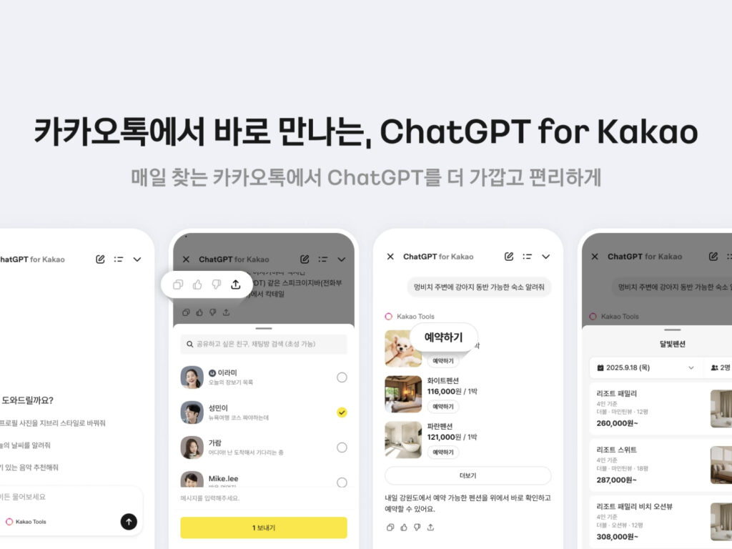 카카오톡에 챗GPT가 공식 탑재되며 국내 메신저 환경에 큰 변화가 예고됩니다. 카카오는 28일 오픈AI와의 협력을 통해 ‘챗GPT 포 카카오’를 출시한다고 발표했습니다. 이용자는 카카오톡 채팅탭 상단의 챗GPT 버튼을 눌러 별도 로그인 없이 바로 서비스를 사용할 수 있습니다. 기존 오픈AI 계정과의 연동도 가능하며 무료 이용자에게는 일정 사용 한도가 적용됩니다. 이번 서비스는 카카오의 AI 에이전트 플랫폼 ‘카카오 툴즈’와 결합돼 […]