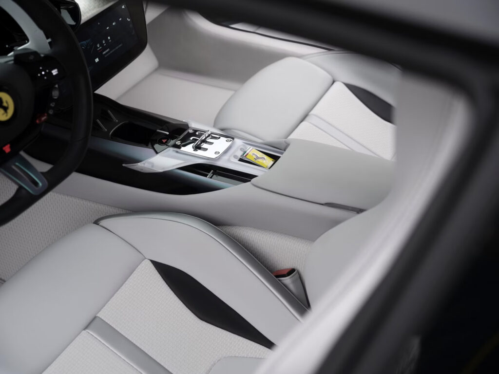 Traditional Korean craft techniques are directly applied to the interior. The seat patterns and dashboard decorations, crafted with horsehair weaving, are inspired by Joseon Dynasty crafts, while the emblem and interior details, crafted with translucent materials, are a style never before attempted in a Ferrari. The brake calipers and paddle shifters feature a white lacquer-inspired finish.