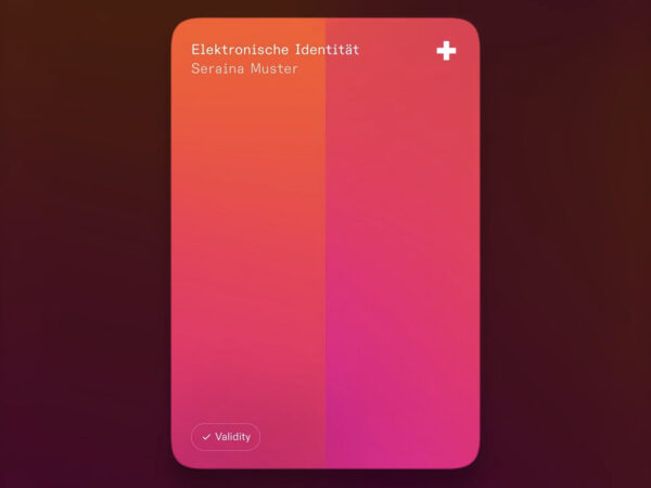 The color strategy focused on visualizing Switzerland's diversity. Two dynamic gradient layers were used to create countless combinations and reinforce the impression that each user has their own unique eID. In the app, the gradient moves with each touch on the eID area or tilt of the phone, intuitively conveying security and authenticity.