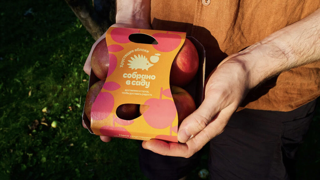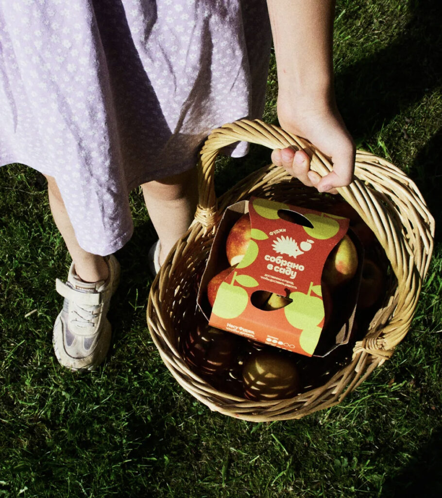 Structural details also contribute to the brand narrative. The box's side handle is perforated in the shape of an apple seed, subtly linking the B shape of the logo with a hint from the Cyrillic script. This design serves as both decorative and functional, making it easy to hold with one hand.