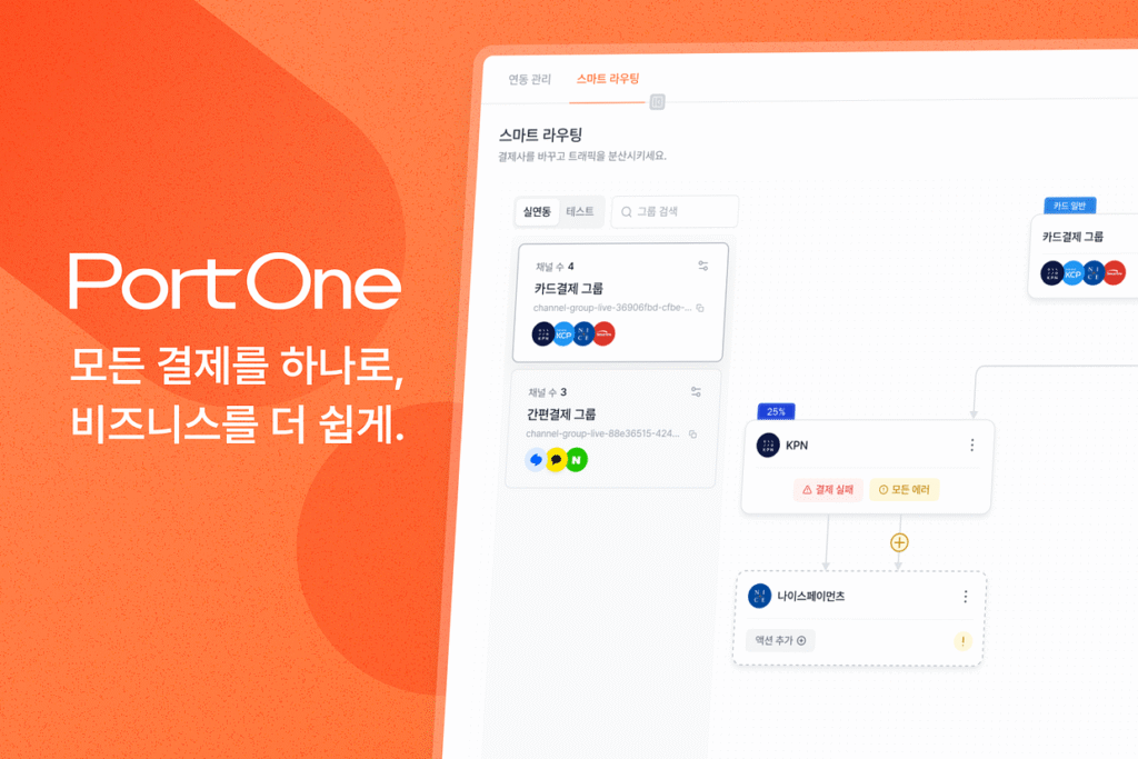 PortOne은 결제가 필요한 고객사와 다양한 PG사 사이에서 손쉬운 연동을 돕는 B2B핀테크 솔루션 기업입니다.