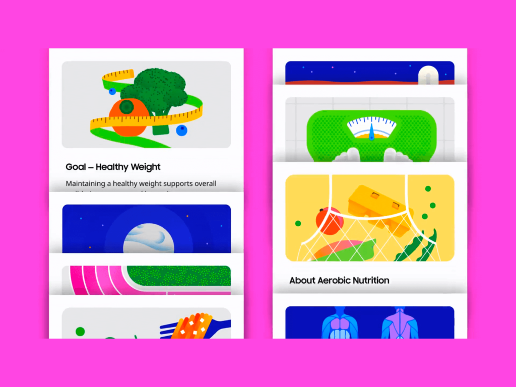 삼성 헬스와 이탈리아 토리노 기반의 디자인 스튜디오 illo가 협업한 일러스트레이션 시스템입니다. 삼성 헬스가 사용자들의 건강한 삶을 지원하는 데 있어 시각적 경험이 중요한 역할을 합니다. 운동, 영양, 수면 등 일상생활의 핵심 요소를 추적하는 삼성 헬스의 기능을 돋보이게 하기 위해 90개 이상의 시각 자료를 제작했습니다. 히어로 일러스트레이션, 애니메이션, 반응형 아이콘 등 다양한 시각 요소를 포함했습니다. 건강 관리 […]